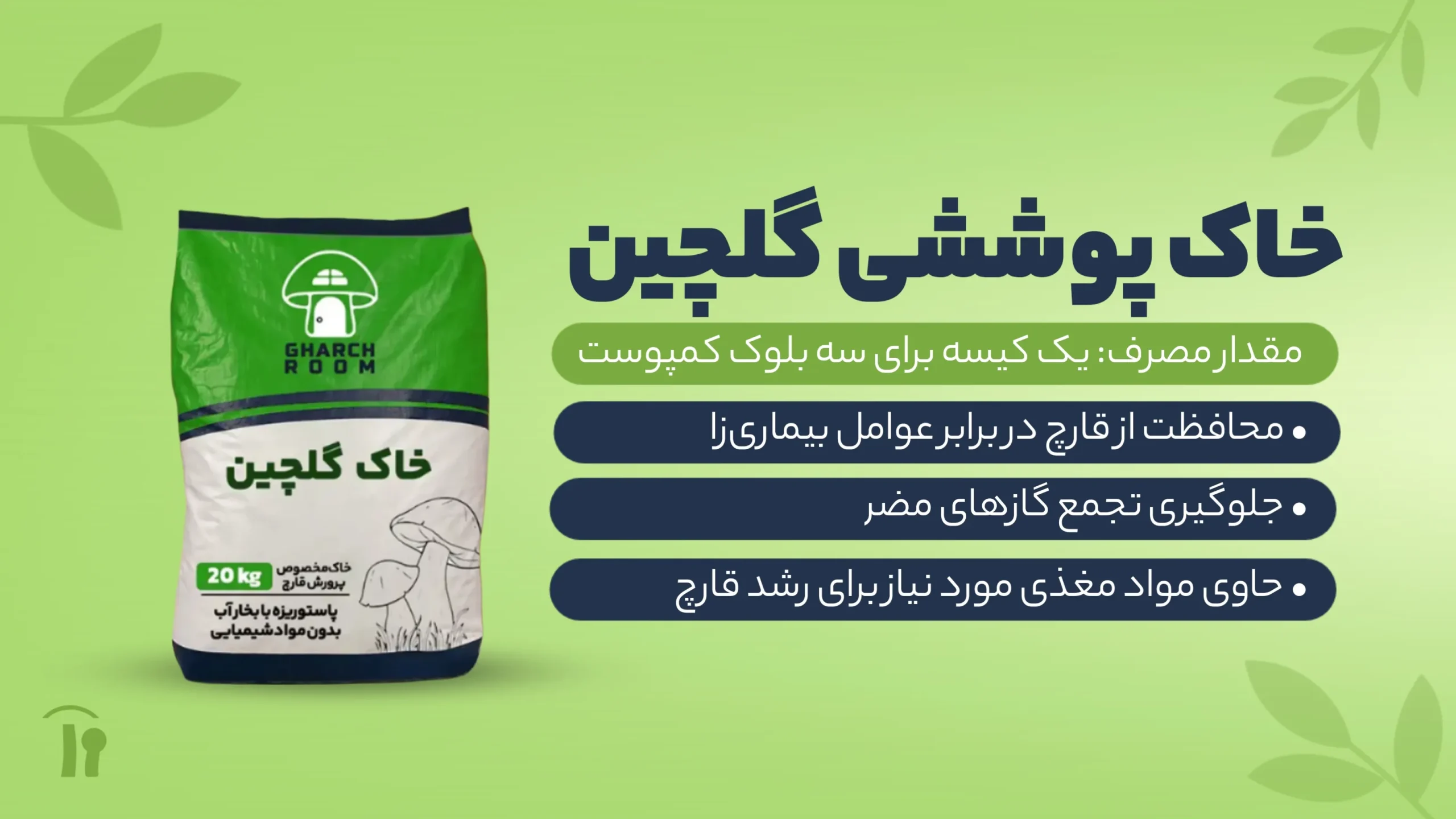اگر بهدنبال خاک پوششی قابل اعتماد هستید که در شرایط مختلف محیطی عملکرد ثابتی داشته باشد، خاک پوششی گلچین انتخابی هوشمندانه است. این محصول برای پوشش سه بلوک کمپوست طراحی شده و با مشاوره کارشناسان فروشگاه کمپوست قارچ سارا، میتوانید مقدار مناسب برای سالن خود را بهدرستی انتخاب کنید.